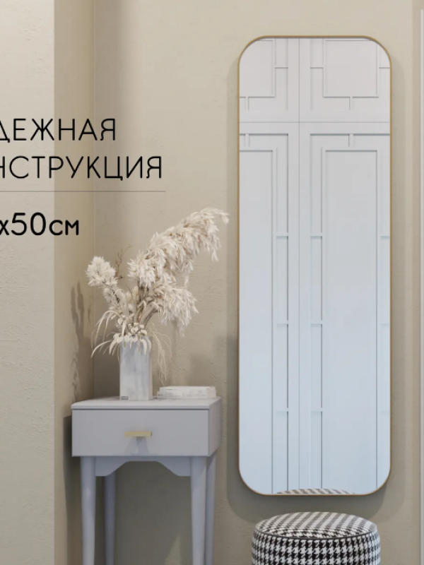 Зеркало «Evolve». Артикул GMZ-12-1/2/3 Эффектное настенное зеркало в тонкой металлической раме с закруглёнными углами можно с уверенностью назвать универсальным. Оно имеет прямоугольную форму и подходит как к классическим интерьерам, так и к современным. Крупный формат делает это зеркало функциональным с возможным размещением в помещениях различного назначения: спальне, ванной, гостиной, коридоре. Рама выполнена из высокопрочного металла, поэтому зеркало устойчивое и безопасное. Зеркальное полотно бельгийского производства, бренда AGC, продукция которого высоко ценятся во всём мире.Характеристики:– габаритные размеры – 1500х500х40 мм, металлический профиль тонкий – 4х40 мм, радиус закруглений – R100; – высокопрочный защитный полимерный слой, порошковая окраска; – возможные цвета – золотой, чёрный, белый; – саморезы для крепления к стене в комплекте; – вес – 20 кг; – гарантия – 1 год.
